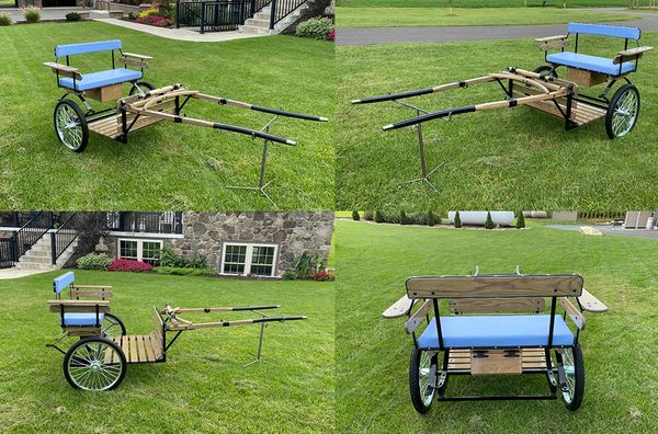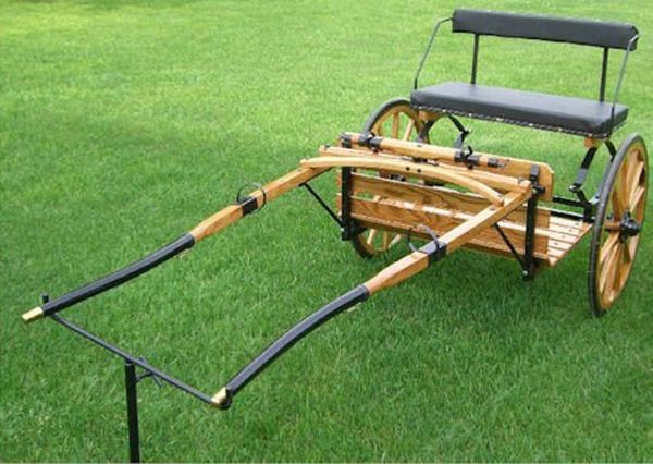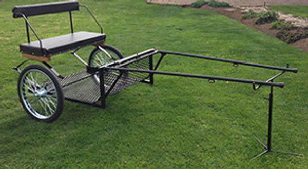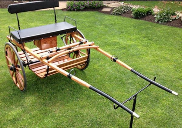 This all-purpose economy version is very easy to get in and out of. This cart is very lightweight and is great for pleasure driving or for mini horse training, This cart offers a very comfortable ride with the full spring suspension system. Includes black vinyl seat and your choice of stain colors weight 75lbs. price listed is with 20" wheels